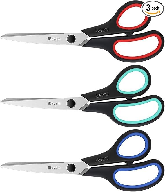 • iBayam 8-Inch comfort-Grip Scissors for Left and Right Hand — 3 Special scissors are suitable for most items that need to be cut. It can also be used as a household scissors for cutting open frozen food bags ready for cooking. Convenient, sturdy, especially sharp scissors.